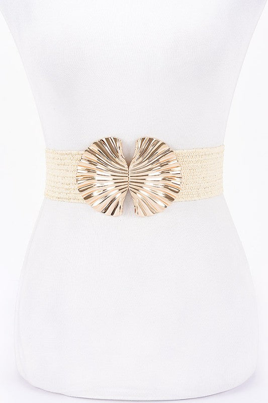 Plus Size Flower Buckle Elastic Faux Straw Belt